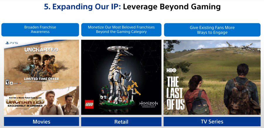 شركة سوني ترغب بشدة بتوسعة أعمالها بقطاع البلايستيشن خارج منظومة ألعاب الفيديو فقط ومن خلال لقاء المستثمرين اليوم أكد رئيس قسم البلايستيشن جيم راين بأن المزيد من المسلسلات التلفزيونية القادمة بناء على عناوين البلايستيشن الشهيرة قيد الإنتاج.