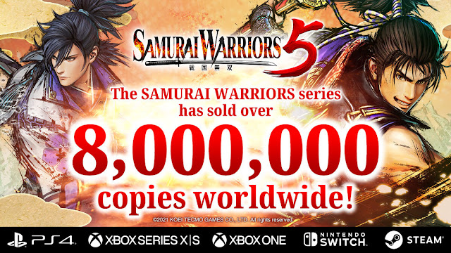 و مؤخرا كشف لنا ناشر اللعبة Koie tecmo عن مبيعات السلسلة كاملة و التي تجاوزت 8 مليون نسخة منذ صدور الاصدارة الاولى في 2006 على منصات الجيل قبل القديم PlayStation 3 و Xbox 360 حتى صدور النسخة الاخيرة Samurai Warriors  5 على منصات الجيل القديم و الحالي و Nintendo Switch و الحاسب الشخصي .