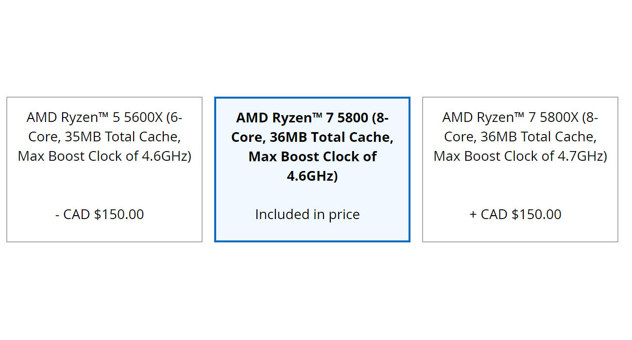 يبدو أن شركة AMD تتخذ خطوات صغيرة نحو توسيع تشكيلة معالجات سطح المكتب Ryzen 5000 المعتمدة على معمارية Zen 3 الجديدة. حيث بدأت Dell Canada في إدراج نموذج لسلسلة المعالجات غير متوفر بعد في قنوات البيع بالتجزئة DIY ، والمعالج المدرج هو معالج جديد كُليّاً Ryzen 7 5800 (بدون الـ X). هذا ليس خطأ مطبعي ، حيث أن الخيار مدرج بجوار معالج 5800X التقليدي، وهو ما يعني كونه معالج مختلف تماماً.