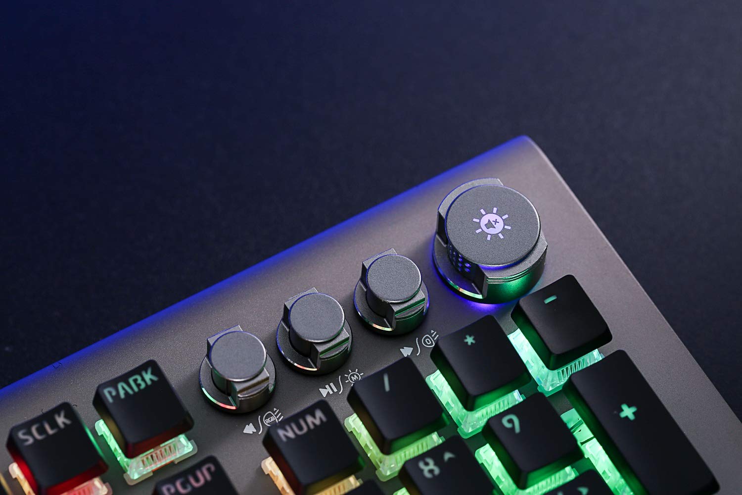 - 【DEDICATED MULTIMEDIA KNOB in MULTIPLE MODES】 The colorful backlit bring you into a great gaming atmosphere. With the aluminum alloy lighting rotary knob, you can adjust the volume level or illusion lighting effects mode(up to 22 kinds), the rotate switching design is special for you.