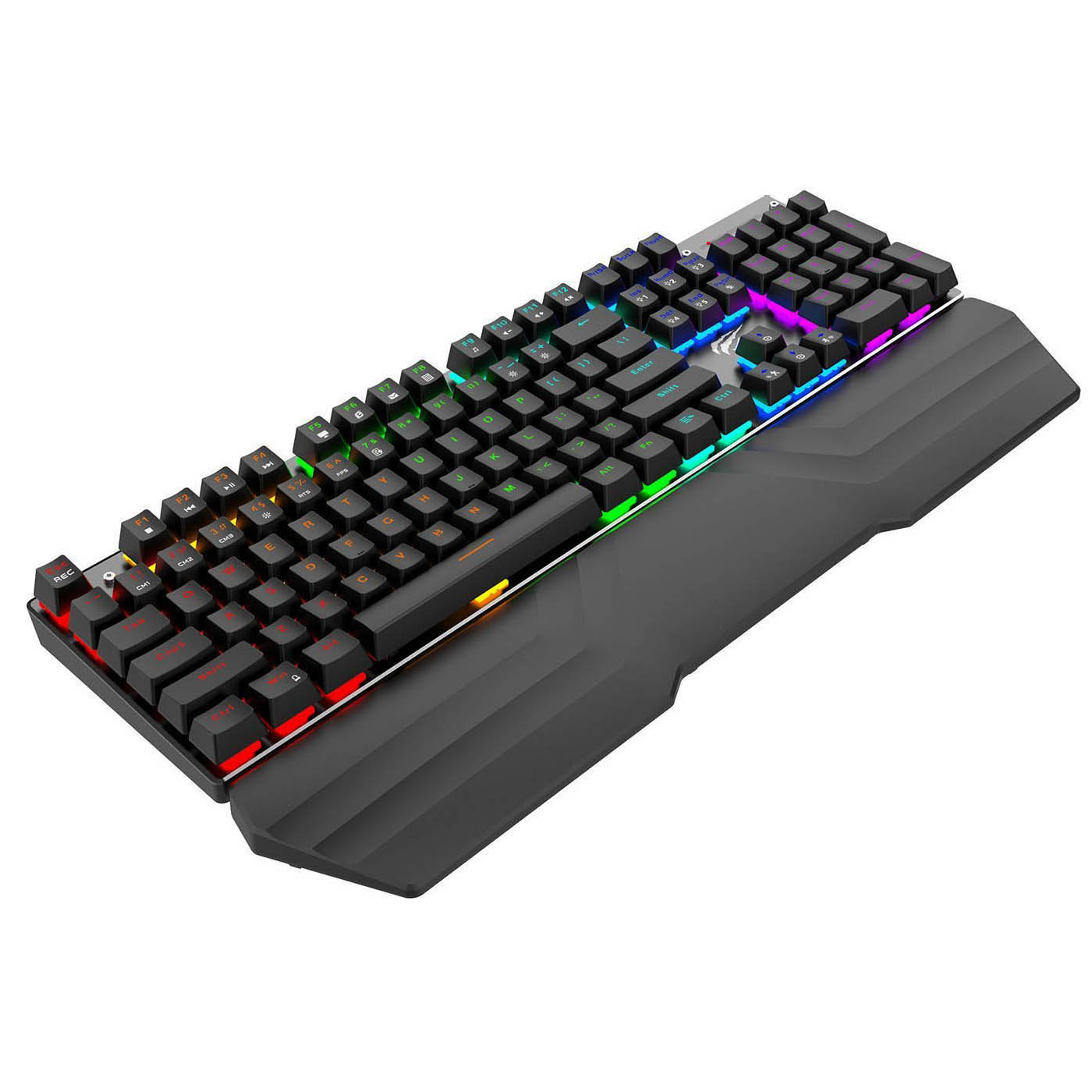 - لوحة مفاتيح ميكانيكال هافيت جيم نوت مضيئة أر جى بى مخصصة للألعاب بأنظمة أضائة متعددة بمسند لراحة اليد – سويتش أزرق